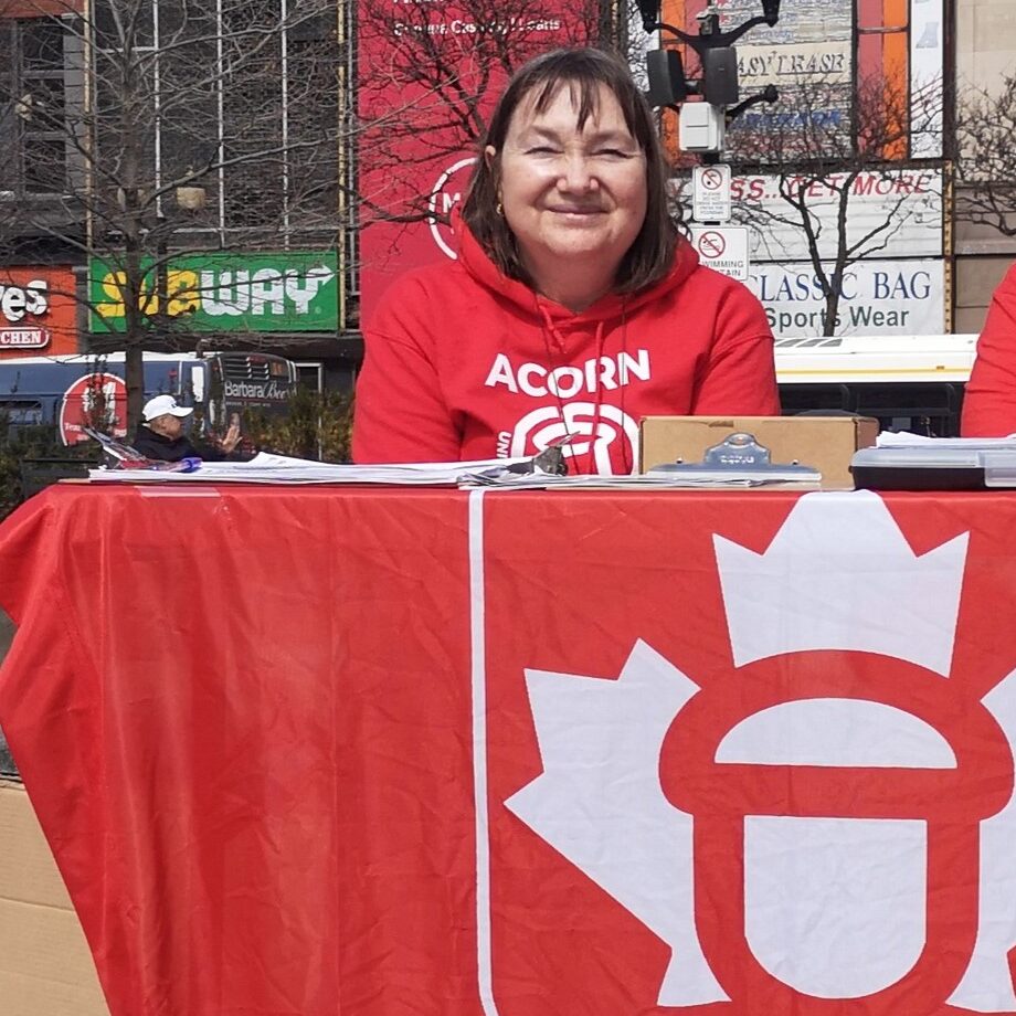 While discussing an AGI at the dog park, a neighbour in a building ACORN had knocked at gave Stacey a flyer and the rest is history! In December 2022 she joined as a member after attending a couple meetings and participated in the Fair Food for All campaign. Since then, her participation is one of the most active at Toronto ACORN where she regularly attends and leads many actions held while addressing ACORN's demands to landlords, City council, and MPPs.