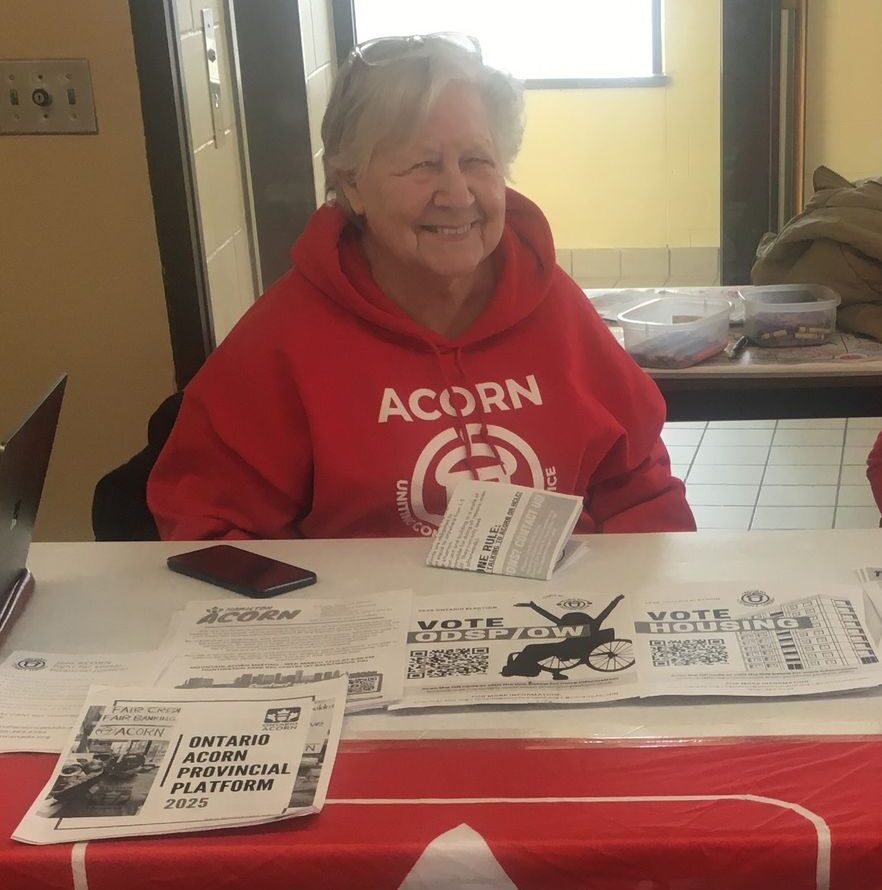 Nicole Myre joined ACORN in 2024 during the re-organizing drive in Hamilton Mountain. A long-time believer in community, fairness, and standing up for those who need it most, Nicole brings decades of life and work experience to the fight for tenant rights and social justice. She retired at age 70 after a 31-year career that included roles as a secretary, store manager, and building superintendent. Now, she volunteers her time with The Legion Branch 163 and is an active and engaged member of ACORN.