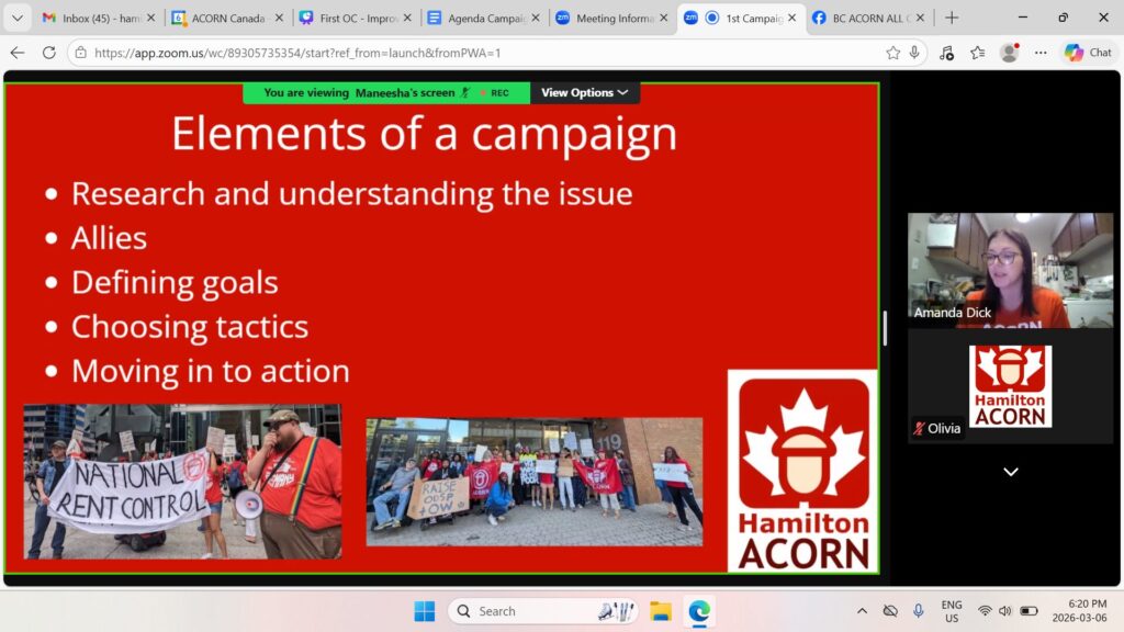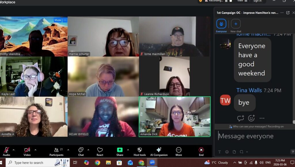 On March 6, ACORN Hamilton members held the first Organizing Committee (OC) meeting on zoom to launch a new campaign to improve and expand the city’s Housing Emergency Fund (HEF) – Hamilton’s rent bank. Over 20 ACORN members joined the meeting.
