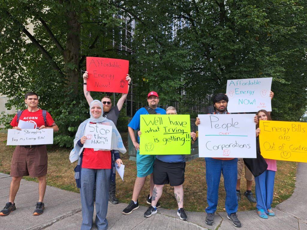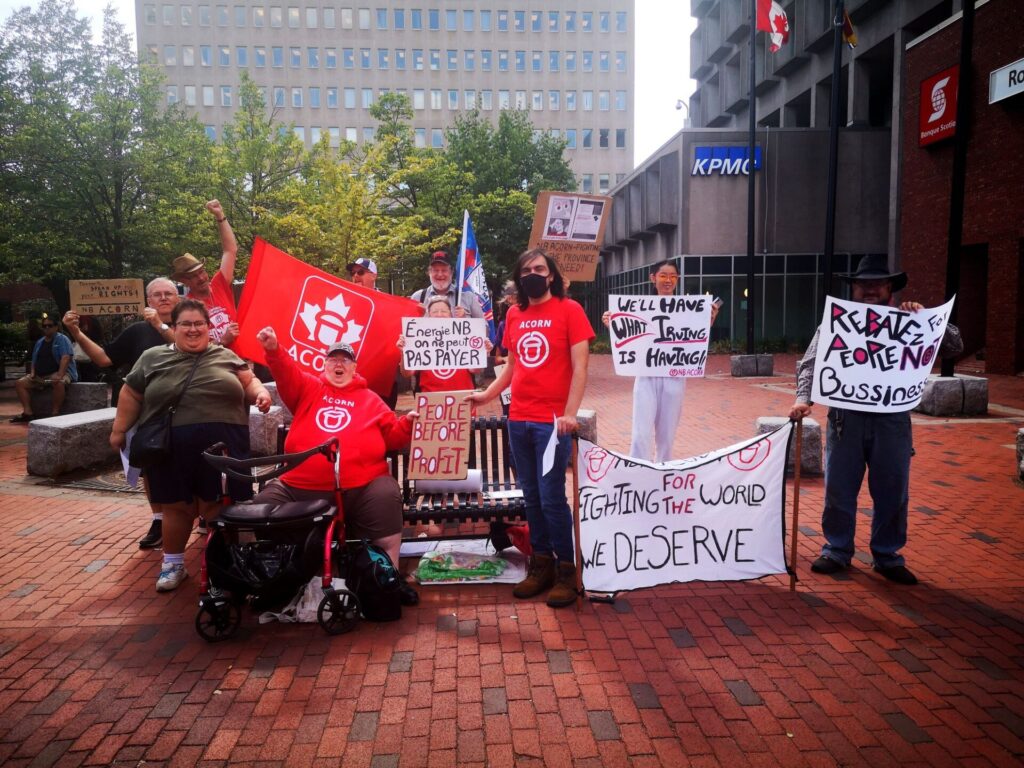 NB ACORN members gathered in front of Assumption Place in downtown Moncton to tell the world (and the Energy Ministry) that low-income people are the ones who need energy rebates- not big businesses!