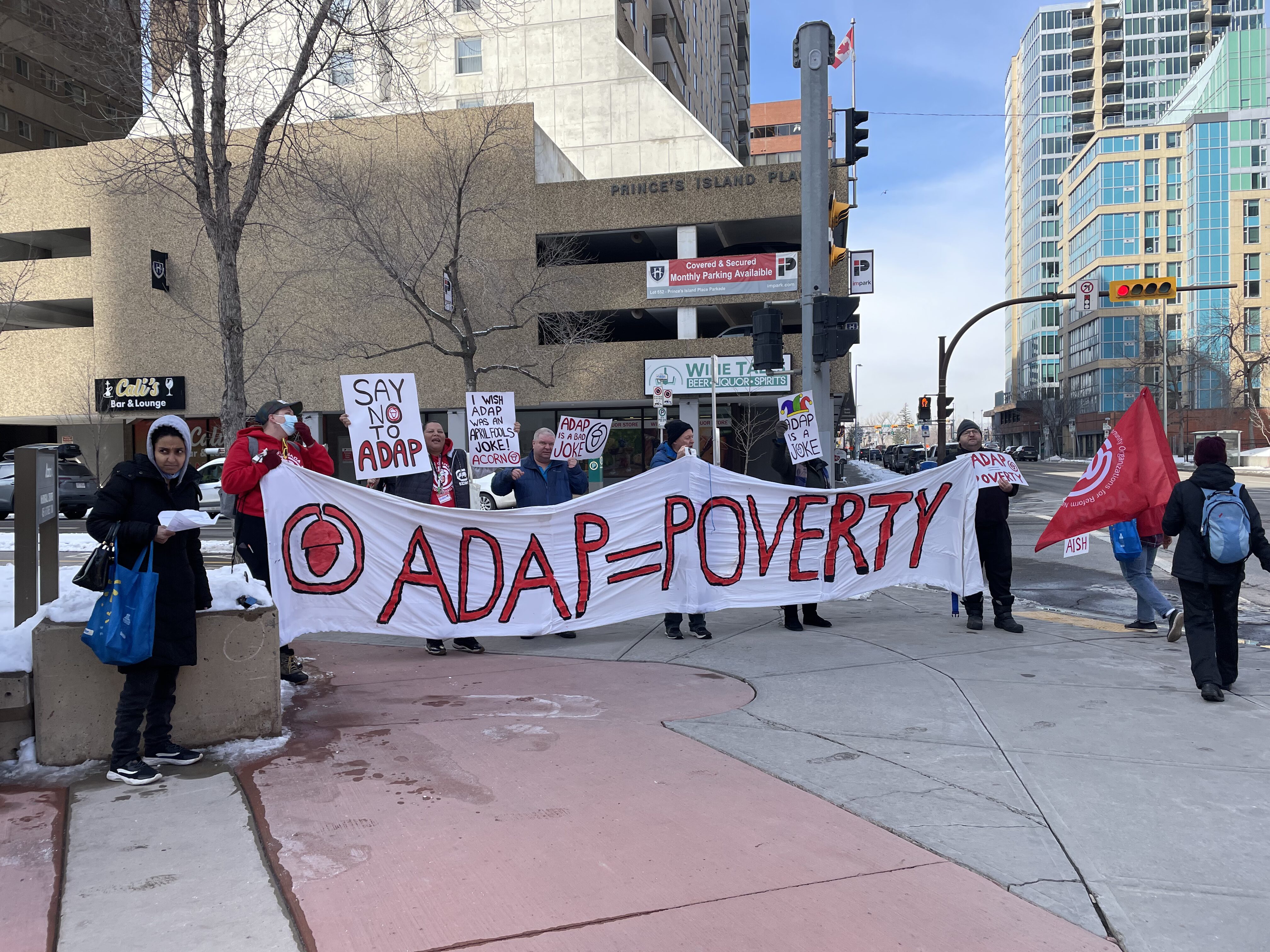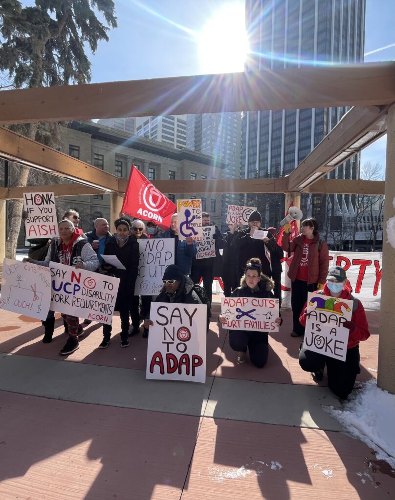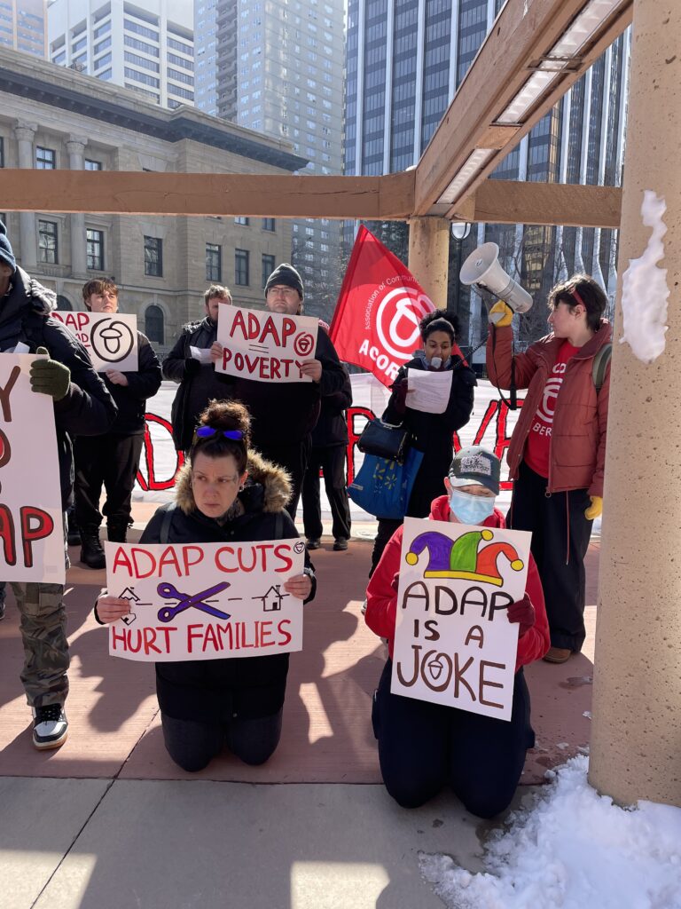 On April Fools’ Day, Calgary ACORN members came together to tell the government that “ADAP is a Joke!”