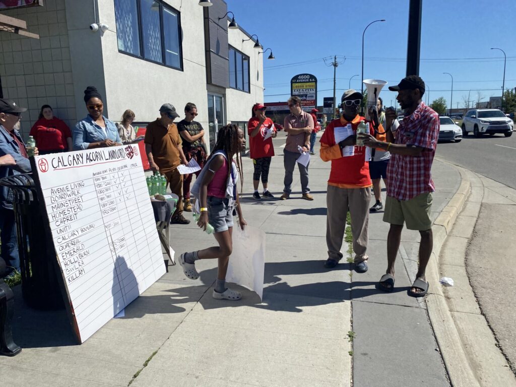 CALGARY, AB— Over 25 ACORN members gathered to fight for landlord licensing! We made our own landlord registry to document the rents and neglect of Calgary’s landlords including Mainstreet, Boardwalk, Avenue Living, and Calgary Housing. We got new people involved, did some chants, and had some great speakers!