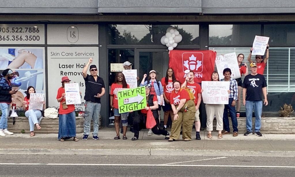 Hamilton ACORN members marched along Main Street to call on MP Aslam Rana to take a stand against Canadian investments tied to the Adani Group. The group rallied outside Rana’s newly assigned constituency office at 630 Main St. East. Members taped demand letters to the door of the locked office, urging MP Rana to condemn Adani’s forced evictions in Mumbai and support divestment.