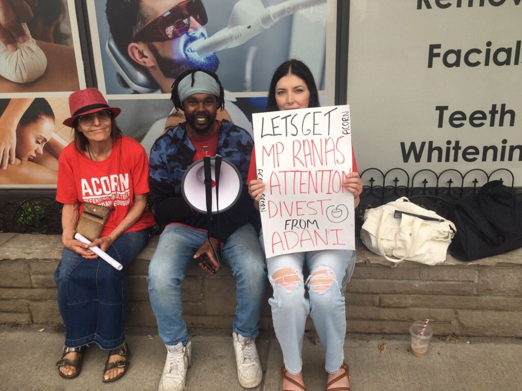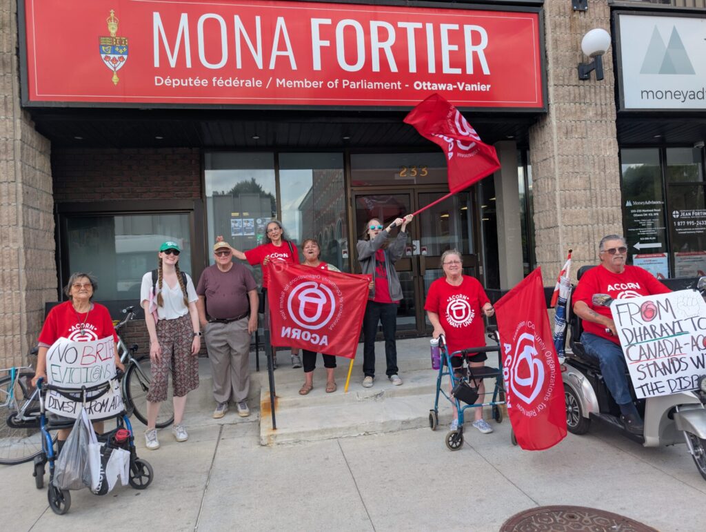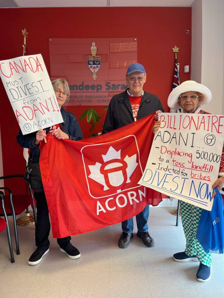 Ottawa ACORN joined the first-ever International Day of Action against the Adani Group with a visit to MP Mona Fortier’s office in Vanier. Eleven members delivered a letter demanding Fortier support divestment from Adani companies, which continue to receive Canadian pension fund investments despite allegations of corruption and human rights violations. Fortier’s staff accepted the letter and committed to providing a response.