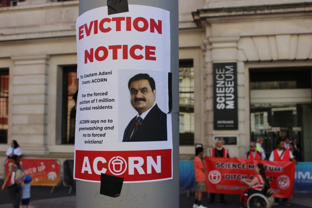 - London, UK: ACORN members delivered symbolic eviction notices at the Science Museum, protesting its sponsorship by Adani Green Energy.