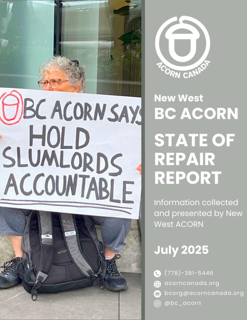 NEW WESTMINSTER— On Monday, ACORN members held a rally at New Westminster City Hall to announce the launch of our 2025 State of Repair report, based on the results from our New West tenant survey. Members shared stories about the 2021 heat dome and repair issues in their apartment, and were joined by Nadine Nakagawa who shared her support of our demands for better tenant protections.