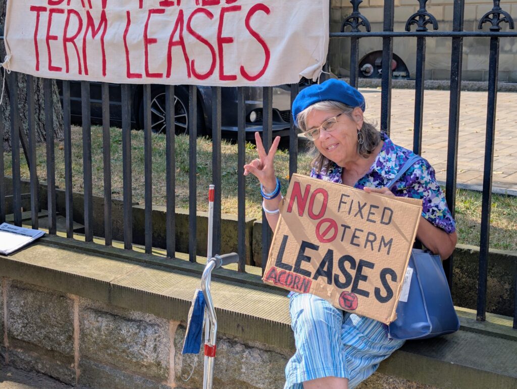 We chanted and had speeches demanding policies that actually protect tenants and keep people in their homes. Our three clear demands: