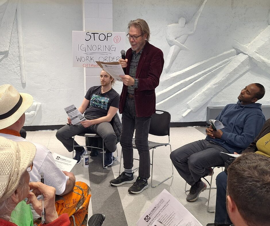 But it wasn’t just fun. We got real about things too. We talked about how Ottawa ACORN fought hard to win property standards in the past, and how we always said it wouldn’t be enough without real enforcement. And now? That’s exactly what we’re seeing. Repairs not getting done, bedbugs and cockroaches everywhere, buildings falling apart, all while landlords get away with it.