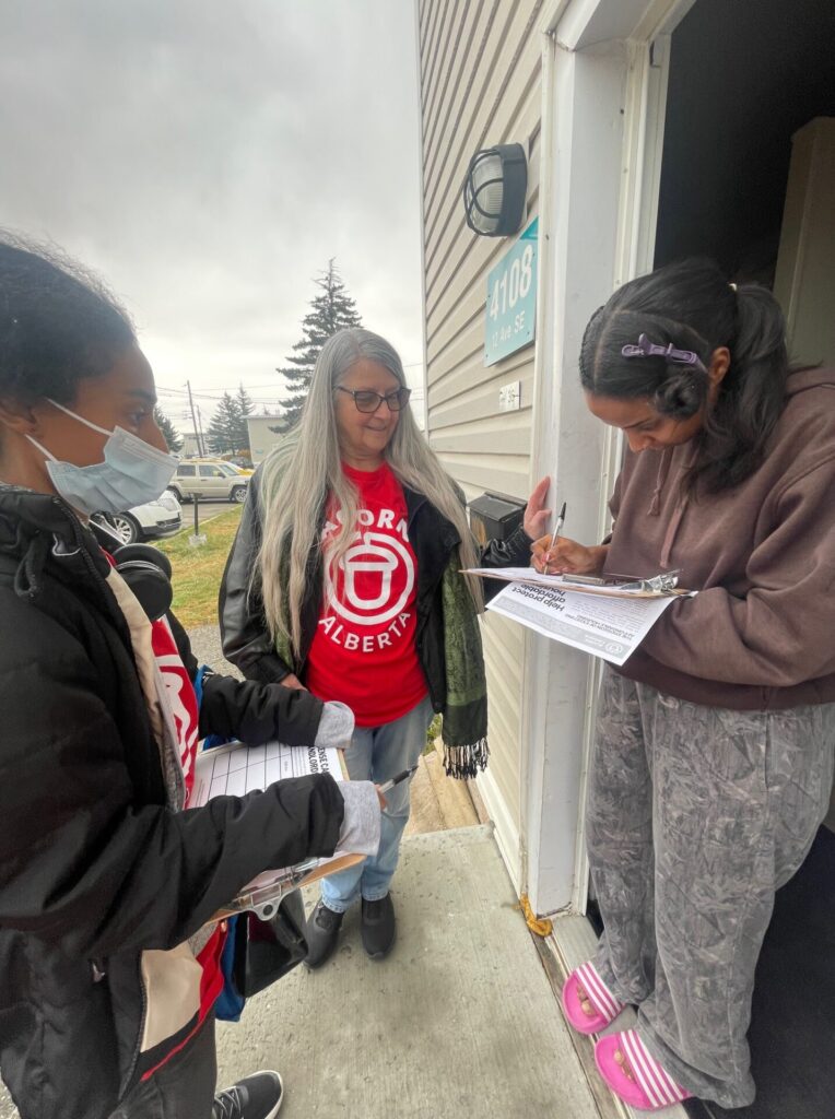 Despite that fear, we had great conversations and gathered petition signatures to ban fixed-term leases and protect tenants’ right to safe, stable housing. Tenants agreed that any money given to the provinces from the federal government to build more housing, must come with conditions that will bring provinces like Alberta up to a minimum national standard of tenant rights!