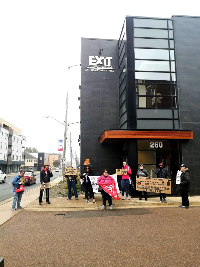 In New Brunswick, a dozen members came despite the rain in front of Dieppe City hall to read both ACORN’s national Housing Platform and provincial Do Rent Control Right demands. They then marched to the front of EXIT REALTY’s office- the only office of Kyle Johnson that is publicly available. Kyle Johnson is a known slumlord in the greater Moncton area, his company’s rent hikes made headlines during the pandemic.