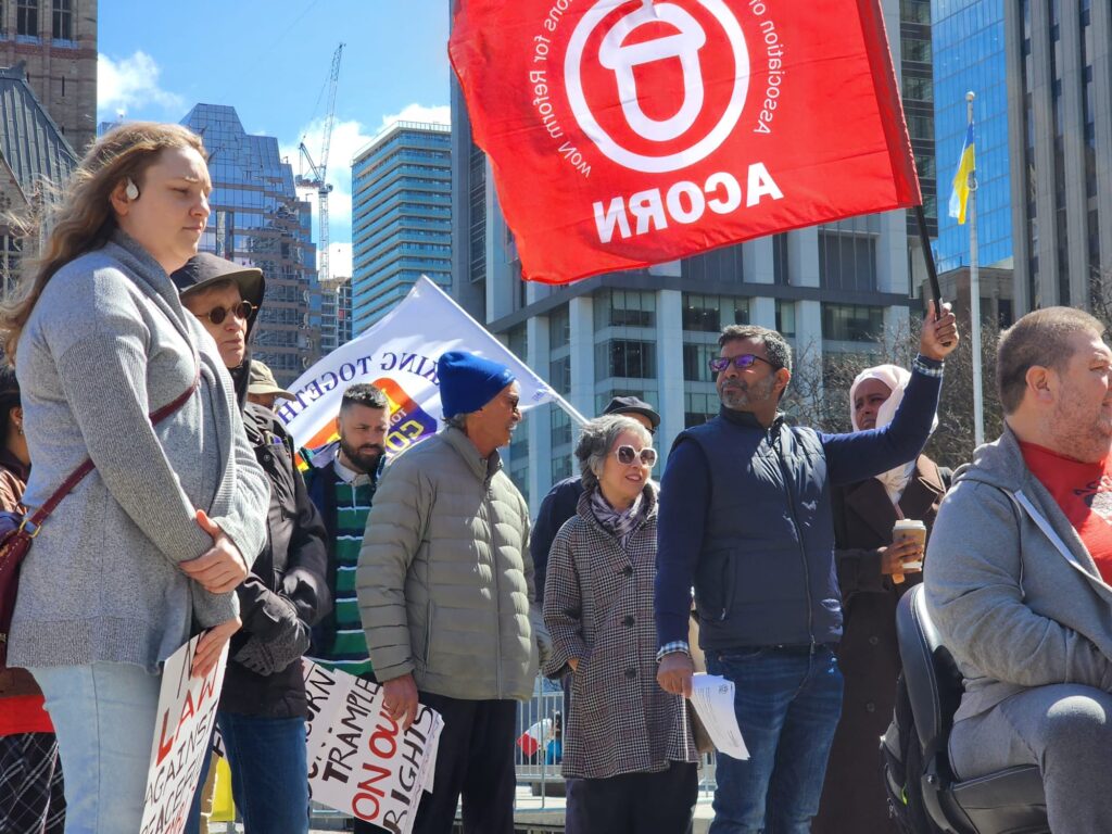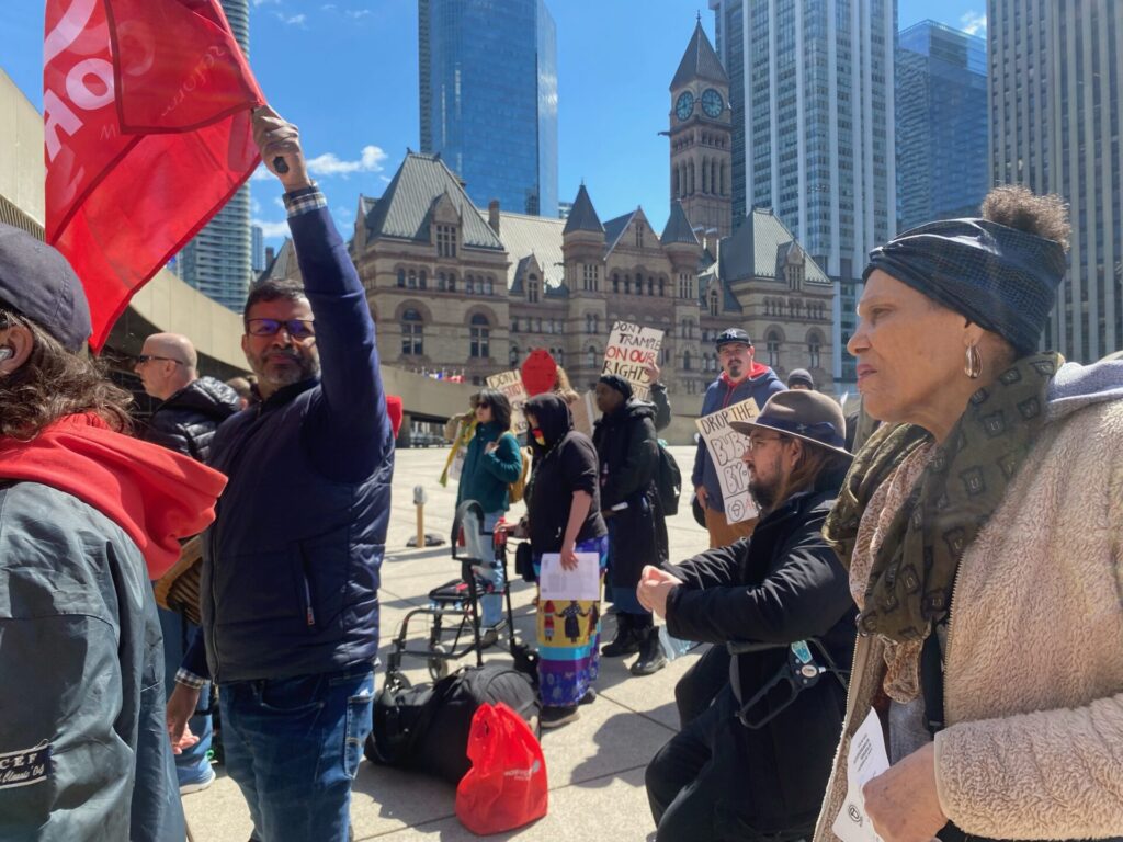 So what was our answer to this anti-protest bylaw? Protest. Around 50 of us marched across Nathan Phillips Square to City Hall along with The Labour Council and the Charter Coalition. Andria Babbington spoke passionately on the clear Charter breaches of this bylaw, and our members voiced how this would impact our organizing efforts. Through our stealth mission into City Hall, we managed to blitz all the City Councillors and the Mayor, where some staffers came out to receive our letter contesting the anti-protest bylaw!