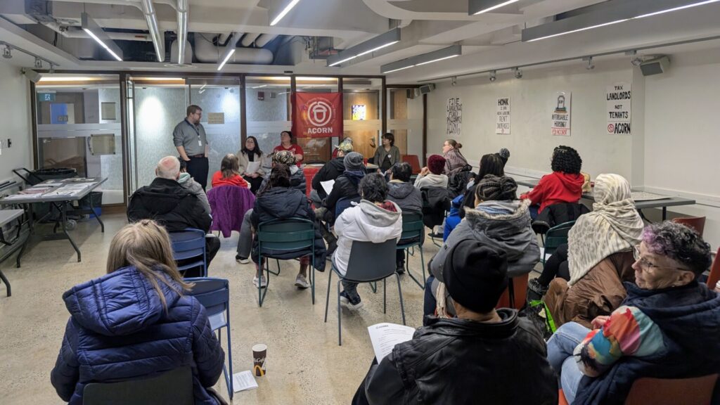 At a tenant town hall at the York Woods Library, residents of the York West neighbourhood came together to launch the “Repairs Can’t Wait” campaign, demanding stronger enforcement of the very city program ACORN members fought a decade to create. Filling the room were a few dozen tenants, ACORN members, MPP Tom Rakocevic, as well as representatives from RentsafeTO staff, the Mayor’s office, and MP Judy Sgro’s office.