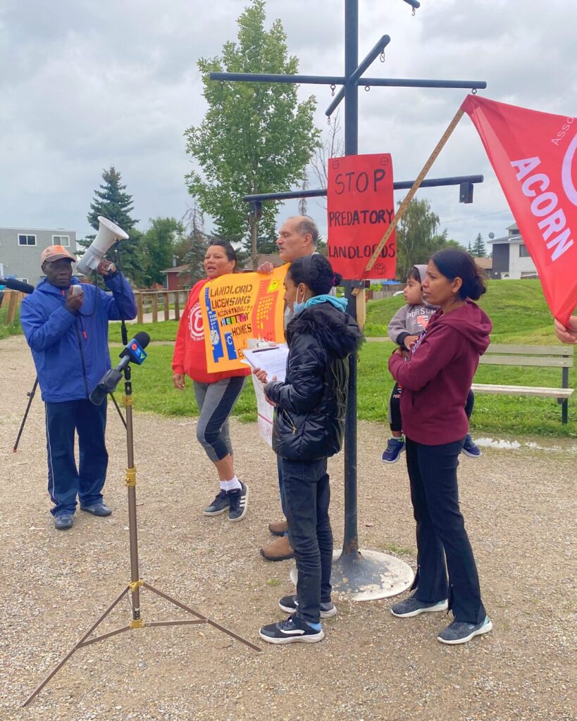 A dozen ACORN members gathered in Calgary’s Forest Lawn Neighbourhood to speak out about negligent landlords and to pressure the City of Calgary to enact landlord licensing!