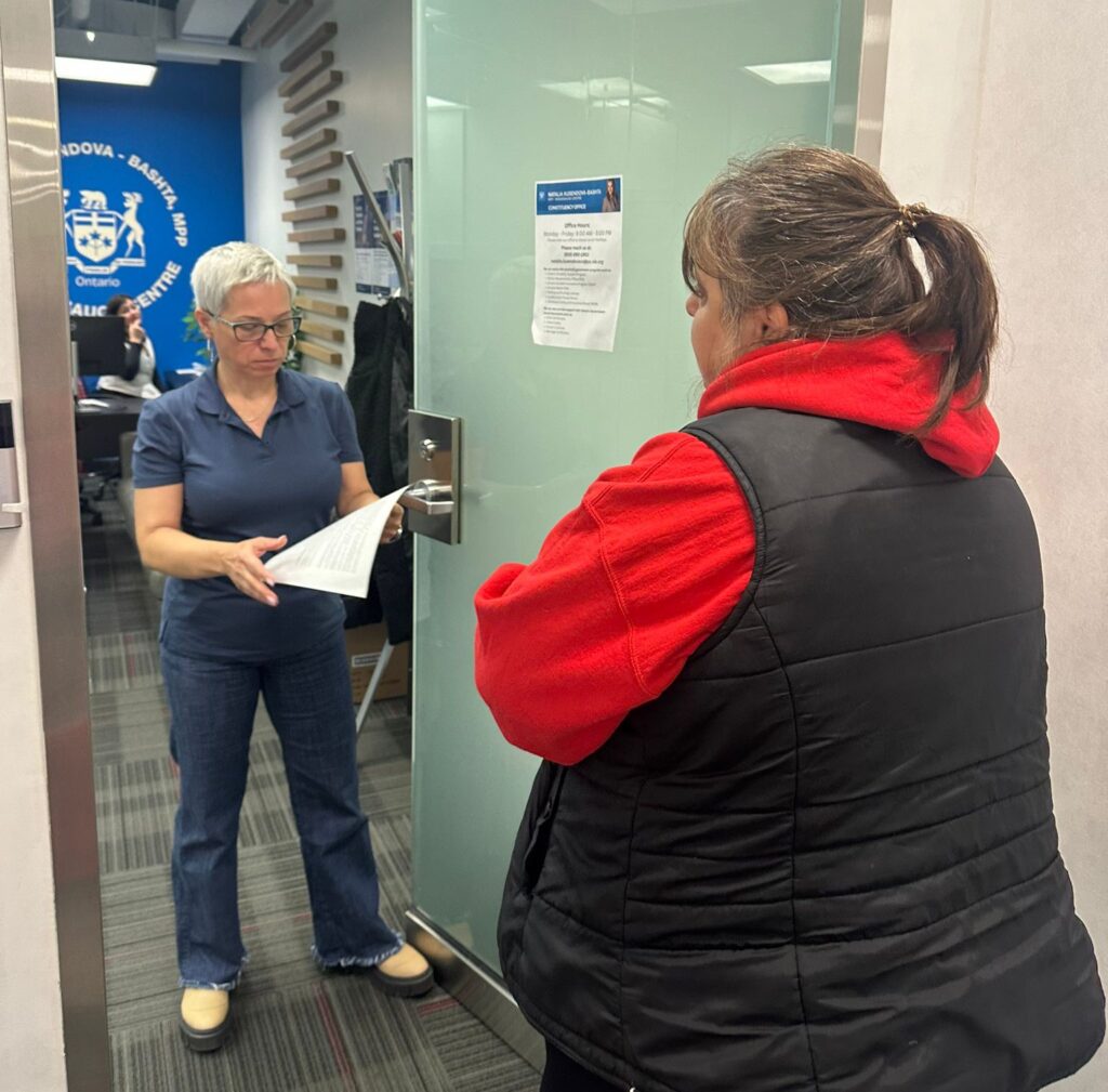 Peel ACORN leaders delivered a strongly worded demand letter to PC MPP Natalia Kusendova-Bashta (Mississauga Centre), outlining the serious problems with Bill 60 and calling for full rent control and tenant protections. Enough of giving landlords the treats and leaving tenants with the tricks!